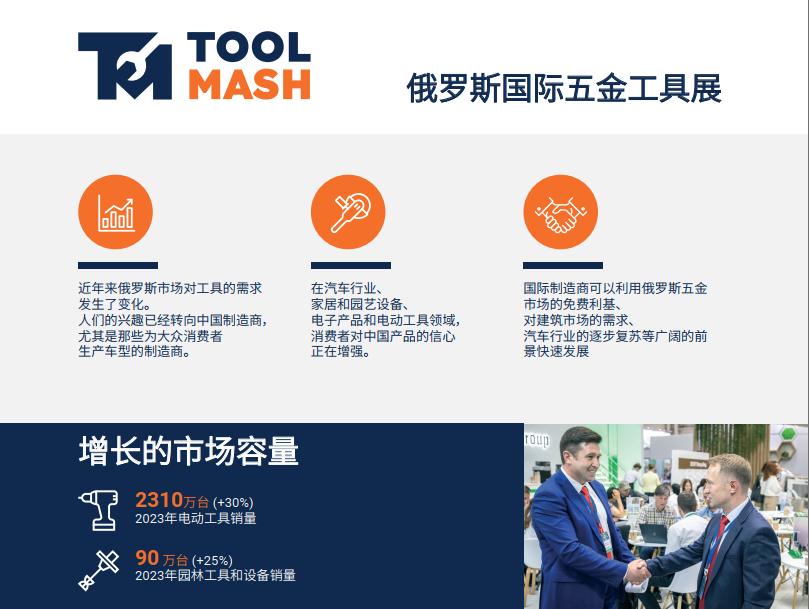 俄羅斯國際五金展覽會Toolmash是由世界著名展覽公司英國國際貿易與展覽有限公司ITE Group Plc主辦,一年一屆在俄羅斯舉行,是一個五金制品及工具、花園工具的專項展覽會,該展是在俄羅斯及東歐地區具有較強影響力的專業展會。